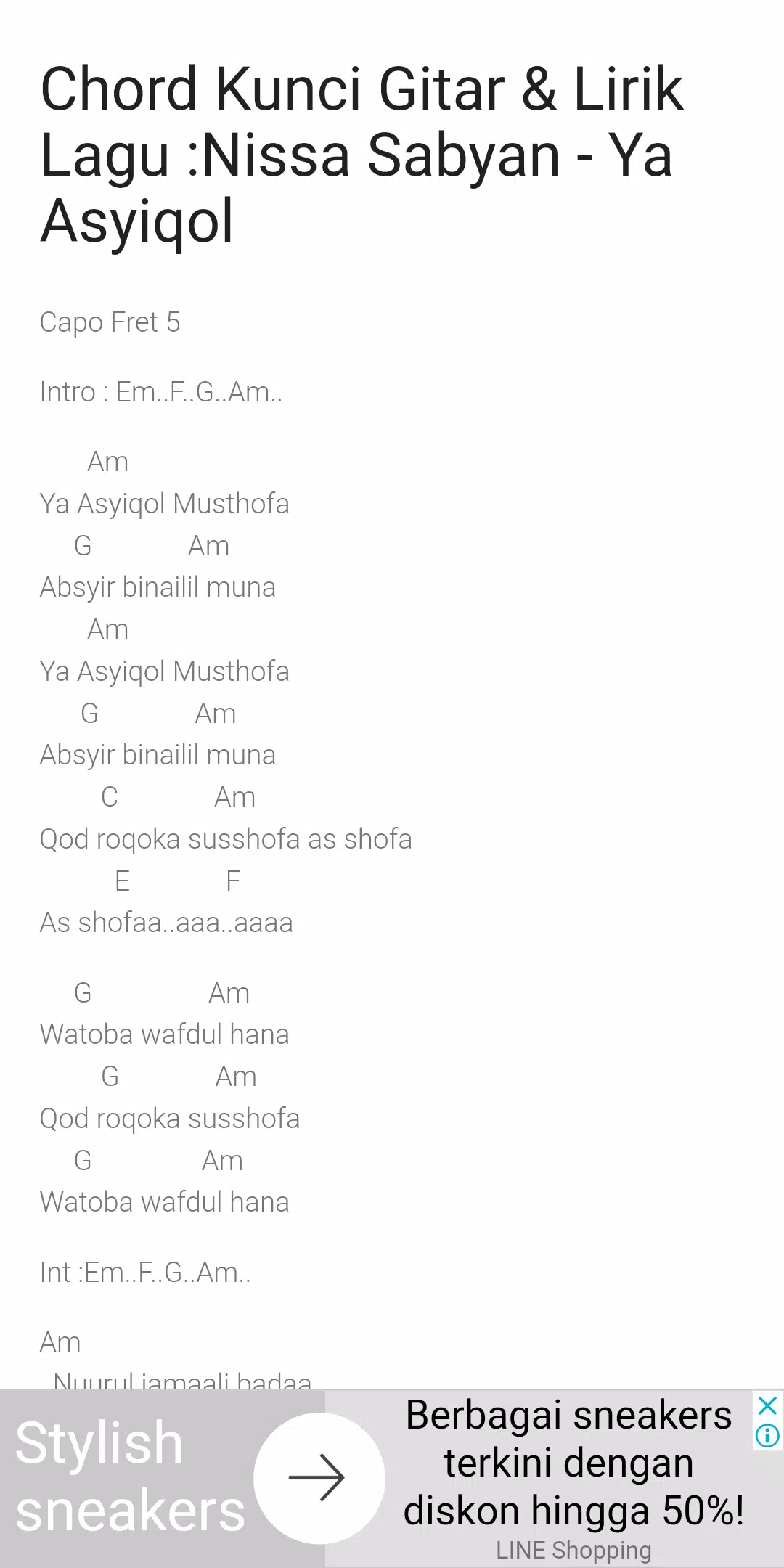 Kunci Gitar Ya Asyiqol Musthofa By Nissa Sabyan Intro. TRIBUNSTYLECOM - Grup gambus Nissa Sabyan kini menjadi sangat populer setelah berhasil melantunkan sholawat. Lagu untuk kedamaian dunia.